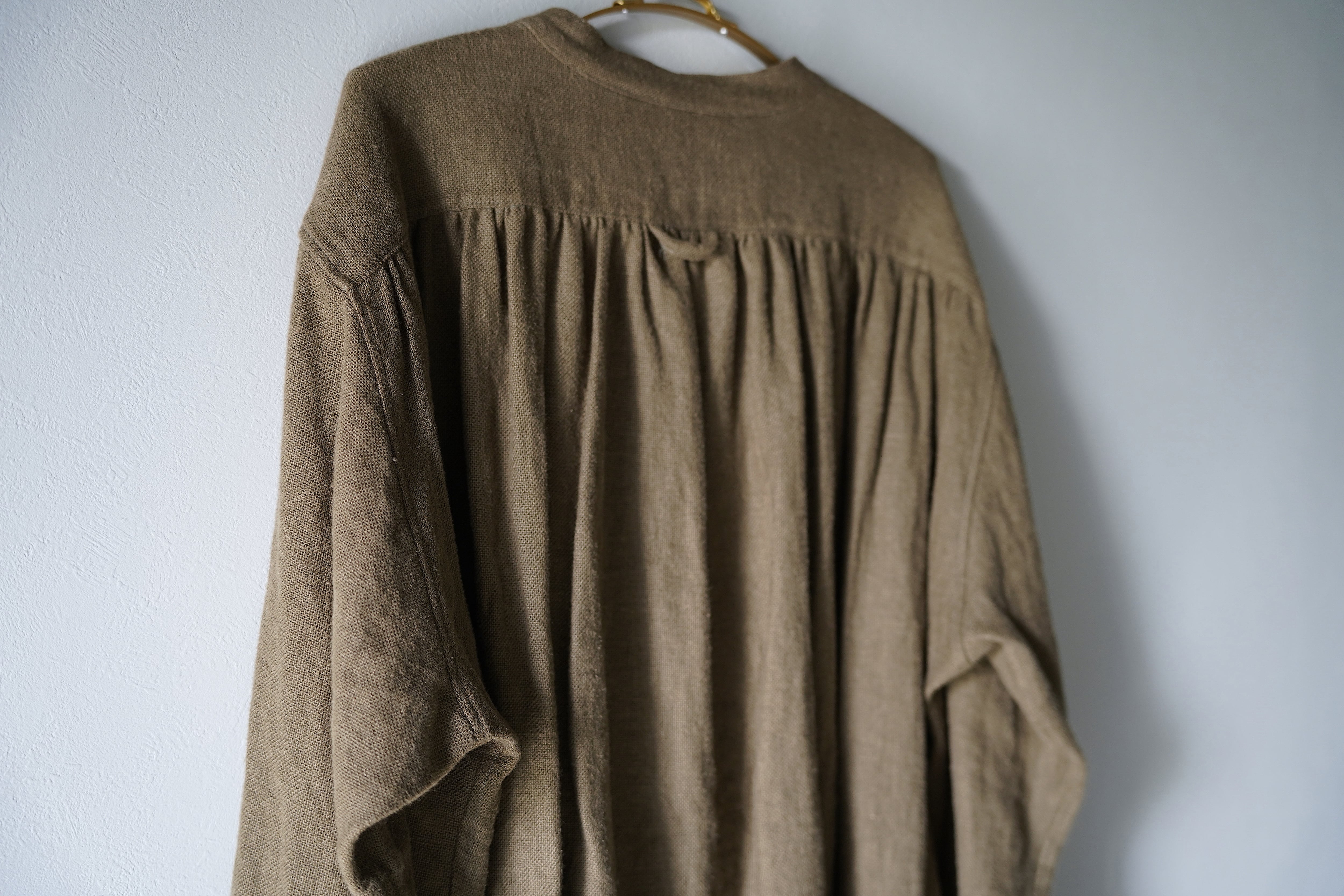 ヨークに多くのギャザーを入れ、運動量があると共に生地の動きを愉しめます。